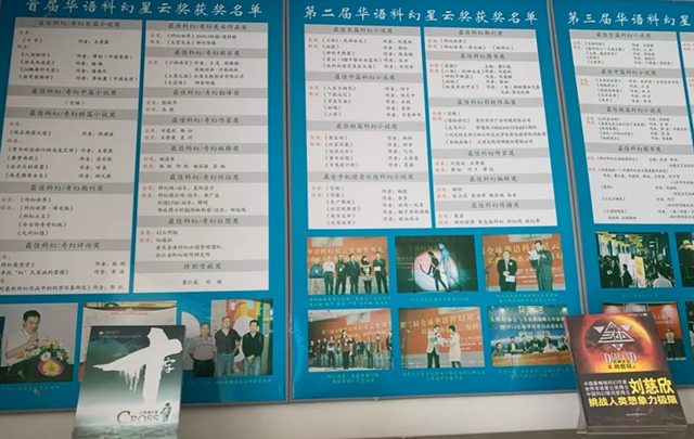 首届至三届获奖名单展板(时光幻象科幻博物馆供图)