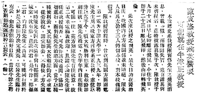 此次陈教授之飞英,最大目的在医治目疾,故国内各方面关系并未断绝,陈夫人及其女公子三人仍留本校,对本校仅请假耳。