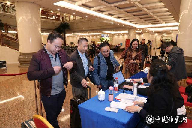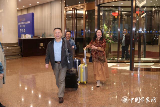 “艾布!艾布!”——电竞竞猜创联部民族处处长陈涛热情招呼着新疆代表团一位东乡族作家。新疆作协主席阿拉提·阿斯木同4位新疆代表在下午4点左右到达,天色已暗,让习惯了晚上10点才天黑的新疆作家们强烈地感觉到,他们已经来到北京,接下来几天要与各民族作家共同探讨文学创作。