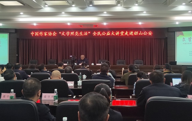 22日下午,与会作家分为三组开展活动。第一组李文朝、骠骑等20余位作家跟随电竞竞猜“文学照亮生活”全民公益大讲堂走进湖南韶山公安局。原海军政治部文艺创作室主任、编剧朱秀海为学员以及韶山市公安局文学爱好者带来题为“文学的力量和作家的使命”的讲座。朱秀海从自身的从军经历和创作经历出发,谈到部队作家如何通过创作为人民服务,他认为军队作家一要完成部队交代的任务;二是用创作为中华民族的伟大复兴服务。在他看来,爱国主义和英雄主义是军事文学中永恒的主题,也是人性的最佳体现。最后朱秀海还谈到《乔家大院》的创作过程,希望通过乔家大院这一题材告诉观众,在农耕社会之外,中国人早就发现了另外一条生存下去的道路,这就是走商品经济的道路。