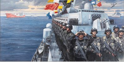 进入21世纪,军事题材美术创作在“熔铸中国气派,塑造国家形象”的中国美术实践中扮演了重要角色。尤其是党的十八大以来,涌现出一批表现我军履行新任务、新使命的作品,如李如油画《亚丁湾护航》、李翔中国画《南海·南海》等。这些极具时代特色、凸显中国军人保家卫国坚定信念的作品,让观众看到了维护祖国统一、世界和平的坚强后盾。