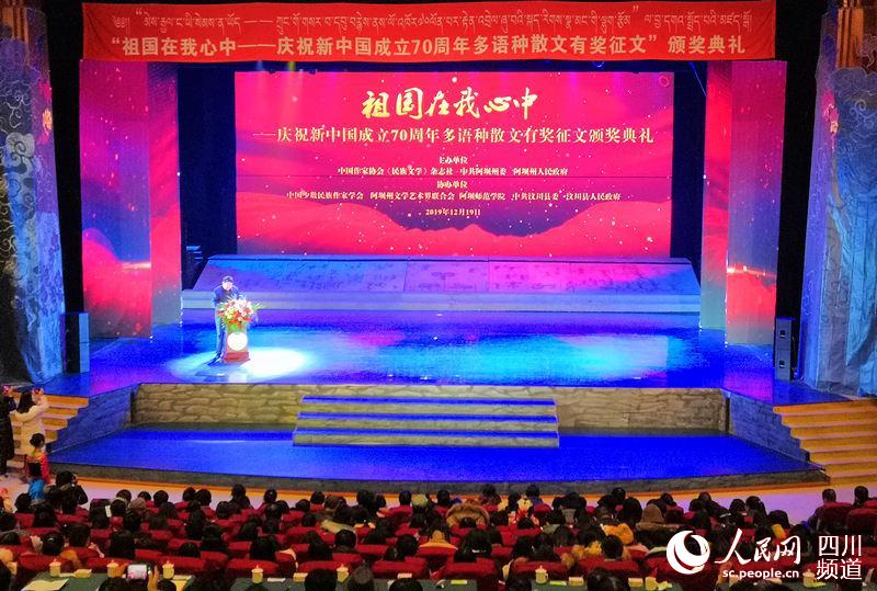 19日,由电竞竞猜官网《民族文学》杂志社与中共阿坝藏族羌族自治州委、州人民政府共同主办的“祖国在我心中——庆祝新中国成立70周年多语种散文有奖征文”活动颁奖典礼在四川省阿坝州汶川县举行,蒙古族作家胥得意的作品《落叶掩埋住的青春》荣获一等奖。
