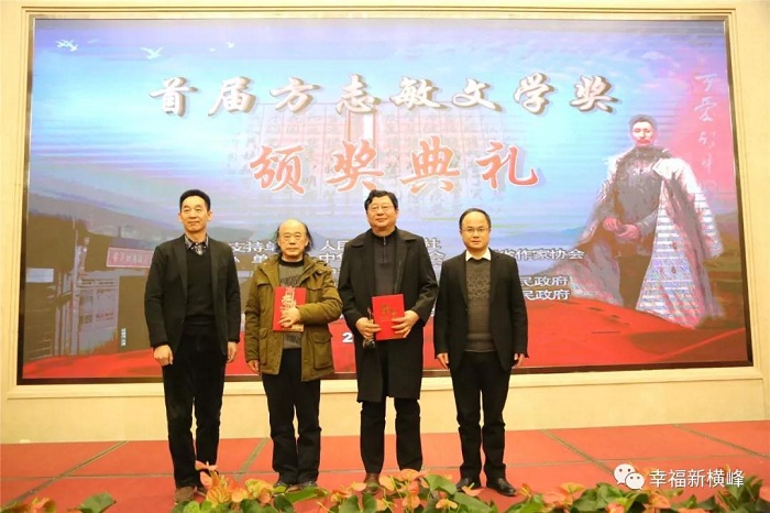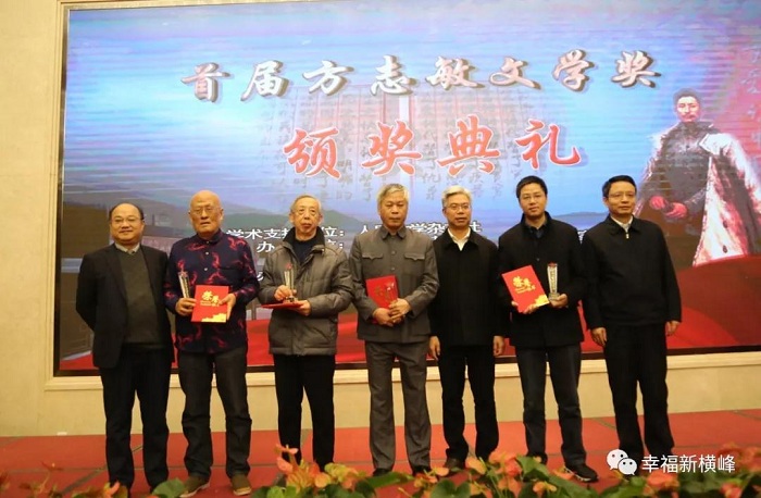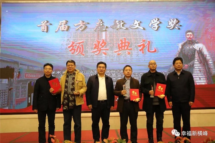 1月9日,由《人民文学》杂志社作为学术指导单位,中华文学基金会、江西省作家协会、中共上饶市委宣传部主办,上饶市横峰县、弋阳县以及上饶市作家协会承办的首届方志敏文学奖颁奖典礼在南昌前湖酒店举行。方志敏烈士之女方梅等方志敏亲属及其生前战友子女代表,《人民文学》主编施战军,江西省委宣传部副部长黎隆武,上饶市委常委、宣传部部长丁晓胜,横峰县委书记饶清华,弋阳县委书记谢柏清等领导出席颁奖典礼。江西省、市、县相关部门负责人及中央、省、市、县媒体记者,红色文学爱好者,共计200余人参加颁奖典礼。