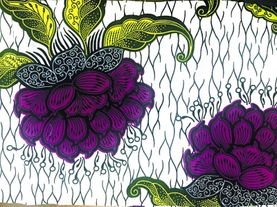 当晚,我按图索骥寻找到河南路的纺织品店。看店的大姐给我看了几样印染大丽花的被面、被套和枕套以及毛巾用品。她说她原来就在印染厂车间工作,每天都能听到机器的轰鸣,因此现在和人说话都要很大声音。她说以前印染都是机器浆染,布料很硬的,要浆染很多遍,而且一次只能一个颜色,容易对不准色线。现在机器先进了,一次性可以染出四五个颜色。现在青岛的工厂基本都搬到高密,因此她店里的印花布都是高密产的。我把这些花样发给孙基亮先生看,他说有些是印度的花卉纹样,已经不再是原有的传统纹样。后来在青岛做旧书买卖的朋友帮我弄到了一批刚刚停产的印染厂的印染花布,花样繁复,华美时尚,虽只是二十几个品种,但足以窥见青岛印花布曾经的辉煌。孙先生看了之后说,“有非洲蜡防(印染工艺)叫康嘎(布)的图案纹样”,这足以看到青岛印花布也是随时代千变万化的。