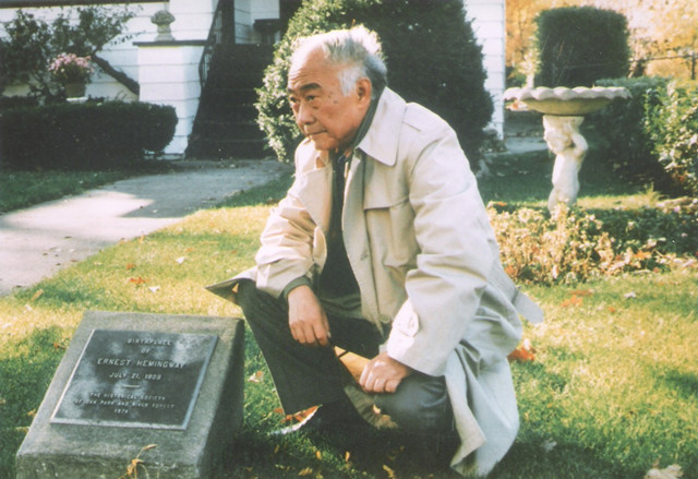 1998年,汪曾祺在美国作家海明威出生地留影