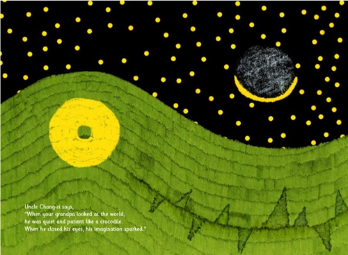 澎湃新闻:这个故事是关于先人、关于家庭的,可以说表达的核心情感相当中国,而您采取的视觉风格却非常多元,我觉得现在中国新一代的绘本创作者好像普遍都不再愿意以一些传统元素和技法、以一种一目了然的“中国风”来讲中国故事,您怎么理解这种趋势?