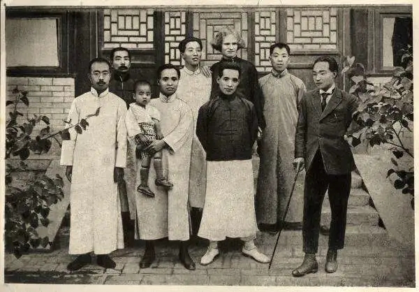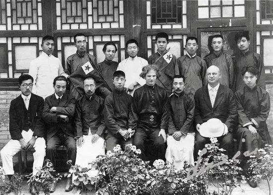1922年5月23日 摄于北京世界语学会。前排左起:王玄、吴空超、周作人、张禅林、爱罗先珂、鲁迅、Sofoklof、李世璋。后排左起:谢凤举、吕传周、罗东杰、潘明诚、胡企明、陈昆三、陈声树、冯省三