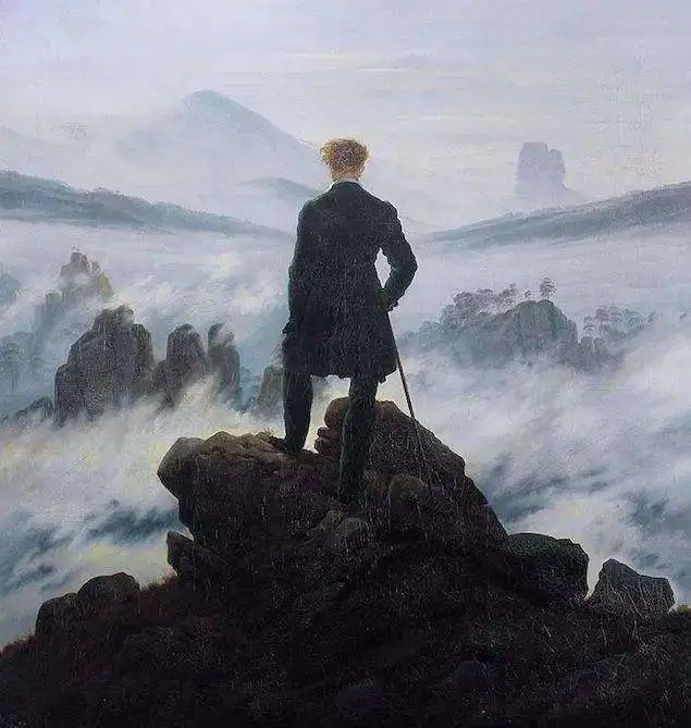 德国浪漫主义代表画作弗里德里希《雾海的漫游者》