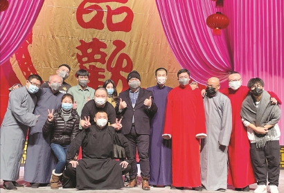 除夕前的最后一场演出,演员们合影时都戴上了口罩。 均受访者供图