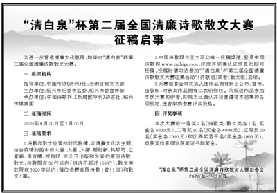 “清白泉”杯第二届全国清廉诗歌散文大赛征稿启事
