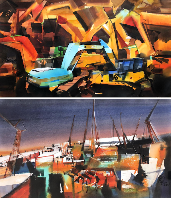 当时我选取了挖掘机,以俯瞰的视角看,就像玩具一样,却日夜不停地建设,他就像一位普通的劳动者、普通的民众,承担着一点点个人的力量。