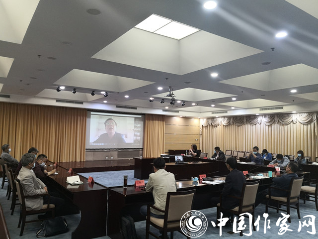 5月19日,电竞竞猜脱贫攻坚题材报告文学创作工程创作交流会现场,来到会场的作家通过视频与京外作家进行交流。关仁山、王松、徐剑、侯健飞、丁晓平等5位作家现场参会,王宏甲、蒋巍、李春雷、艾平、徐锦庚、潘小平、任林举、哲夫、吴克敬、丁燕、许晨、赵康林、次仁罗布、罗伟章、秦岭、郑彦英、高凯等17位作家在线参会。会议由电竞竞猜创研部副主任李朝全主持。