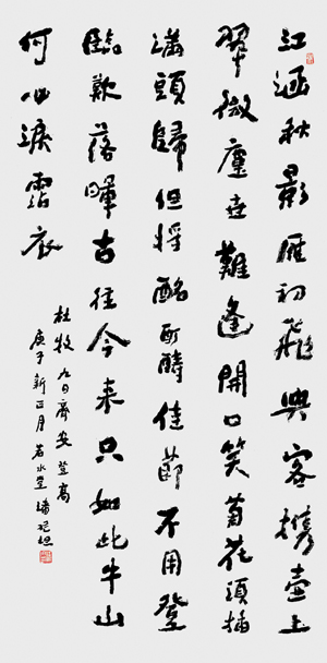 艺术是以发现人、感染人为根本,书法也不例外。线条是书法的外在表现手段,许多书法家为了强化视觉冲击力,就在线条上做文章,要么“大刀阔斧” ,要么“剑拔弩张” ,如同舞台上的摇滚歌手,动作奇异、声嘶力竭,博取观众喝彩。当代书法进入竞技性阶段,强调观赏、忽略阅读。因此,对书法外在形式的热衷不断升温。其实,书法的美是中和之美,它需要文辞的内涵、思想的意义、人格的魅力。书法家的书写,需要平静,看似波澜不惊的书写,恰是生命情感的展示。潘继坦的书写,就是这样的书写。他重“形质” ,也重性情。他写字时的安然,很像文人的案头书写, “形质具矣,然后求性情。笔力足矣,然后求变化” 。他把自己炽热的情感付诸笔端,那是看不见的连接和传达——由心到腕,由腕到笔,是他几十年对书法的沉入。