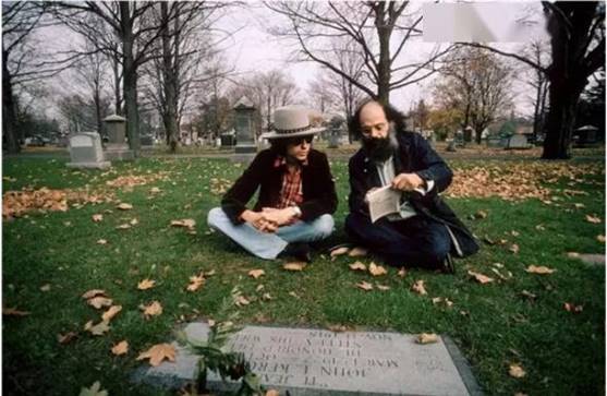 鲍勃·迪伦与金斯堡在凯鲁亚克墓前