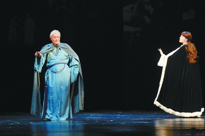于震和妻子辛月一起表演《雷雨》中“鲁贵说鬼”一节,贪婪的鲁贵和娇憨天真的四凤相映成趣。于震说,之所以演出这段既是为了以经典为剧院68周年庆生,也是为了圆妻子的一个梦,“2012年,她因为怀孕错过了四凤这个角色,这次终于可以弥补了。”