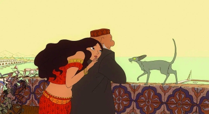 有意思的是,影片比漫画新添的这一处增补叙事,除了弥合故事的逻辑细节外,更信马由缰地荡开一笔,沿着《红与黑》这部小说的主题,扯出作品的另一端叙事线索。一如拉封丹写作寓言时讲究趣味,偏好行文自由流转,尤安·史法在创作时,同样惯于突破刻板的直线叙事模式,喜欢漫不经心地营造旁逸斜出的故事分支。《红与黑》三个字令主人史法先生警惕起来。小灰猫是什么时候识字的问题不再重要,眼下要做的是必须及时禁止这种危险的阅读行为。他把《红与黑》称为政治性小说,责怪小猫引诱自己的女儿阅读这样的书籍。面对史法先生的怒火,小灰猫倒是一如既往地不以为然。它坐在小姐扎拉比娅的膝盖上,好整以暇地说道:“哦,主人,这是一部爱情小说……”