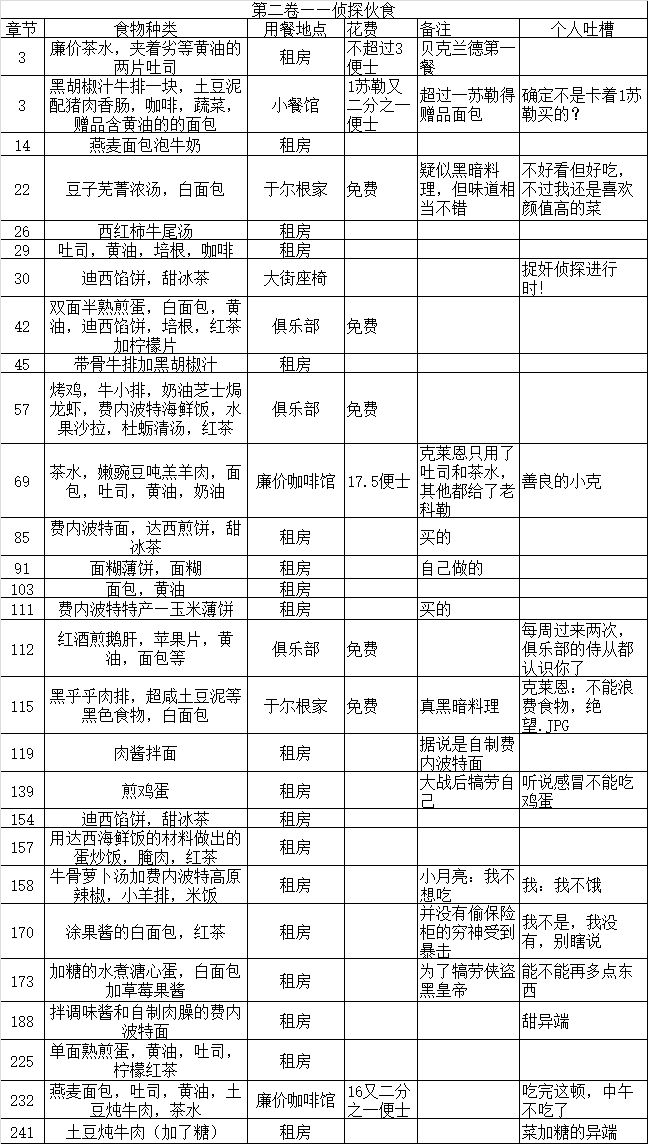 (粉丝整理的男主克莱恩饮食清单)