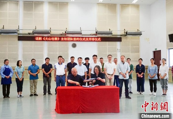 以聚焦广西少数民族地区脱贫攻坚主题的话剧《大山壮歌》,17日举行主创团队签约仪式及开排仪式。该剧作为广西以及南宁市重点扶持的原创扶贫题材舞台作品,计划于今年8月首演,并进行全国巡演。
