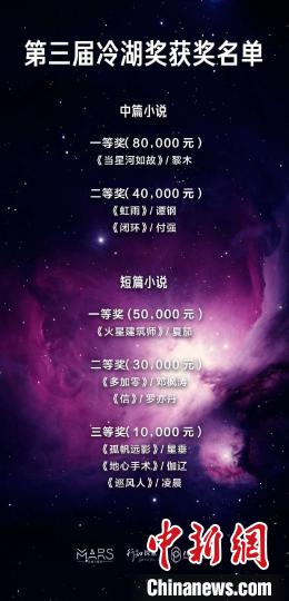 “我会继续秉承着对科幻的热爱,希望能够在呈逐渐星火燎原之势的中国科幻中,递上我的一枚火种。科幻是孤独的,电竞竞猜在孤独中前行又终将用星尘彼此慰藉。谢谢大家,向所有热爱科幻的人致敬。”第三届冷湖科幻文学奖中篇小说一等奖获得者黎木22日晚说。