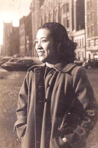 1950年代初期,黄庆云(右一)与冰心(右二)、廖梦醒(左一)、日本作家松冈洋子(左二)