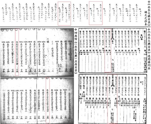 今传宋元两《镇江志》抄本的部分内容大概源出《大典》,《大典》朱笔标示的“嘉定镇江志”“镇江志”或即二书之分殊。如阮、刘二人所言,《嘉定镇江志》抄本“体例未协”“脱文错简”,颇多淆乱。其文本源流,仍须细考。与此类似,《大典》某些卷册虽已灭裂,历史上曾有辑本,原辑本亡佚,又有辗转传抄之本,由此衍生出的文献堆叠层累,要辨清它们的幻化面目,也不十分容易。