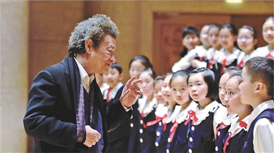没有节假日,没有双休日,他用课外时间去做一件大事。钢琴伴奏,杨鸿年先拉上自己的女儿,女儿出国留学了,又拉上自己的妻子、首都师范大学音乐系教授唐重庆。不是一个人,是一家人在做一个事情。杨鸿年说:“我还要家访,每个孩子生病了,他家什么困难,我都骑车到每家去。因为艺术教育是心灵教育,你不知道他的过去,也不知道他心里缺什么,怎么教育?我给合唱团立了宗旨:爱和奉献。老师把这爱和奉献精神用来培养学生,学生配合老师,把这爱和奉献的精神推向全社会。”