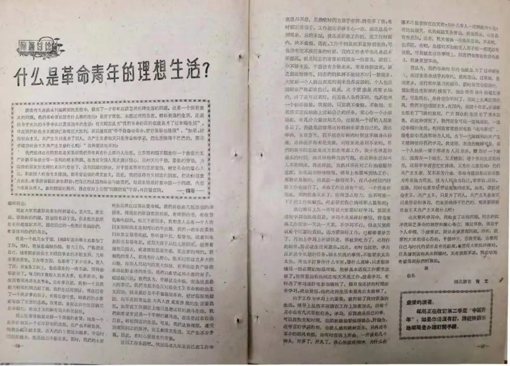 [80]肖文来信刊发于《中国青年》1960年第5期。该信未设标题,这一组“问题讨论”专辑的总标题为“什么是革命青年的理想生活”。