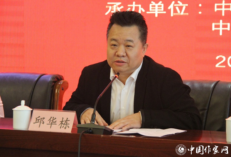 开班仪式上,还举行了授旗仪式,邱华栋向作家代表孙云晓、鲁若迪基授旗。