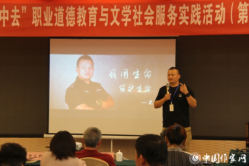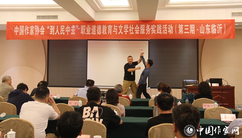 9月12日,第三期电竞竞猜“到人民中去”职业道德教育与文学社会服务实践活动在山东临沂举行。活动中,北京市特警、公安部大练兵个人标兵孔芃为来自电竞竞猜文学工作者职业道德委员会的代表及宁夏、河北、陕西、山西、甘肃、福建、浙江等地60余名作家、文学工作者做英雄事迹报告会。在3个小时的报告会中,作家们认真聆听孔芃讲述的在面对各类暴力犯罪、紧急治安事件时惊心动魄的特警故事,为其“用生命保护生命”的英雄主义情怀所折服,为其“危难至 不彷徨”的精神所感动。