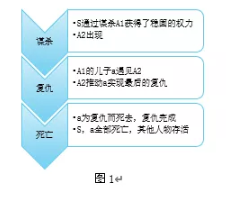 鲁迅一生曾多次提到莎士比亚的戏剧[8],虽然未曾明确谈及《哈姆莱特》对自己的影响,但他在《故事新编》中确实动用了戏剧的表现方式,在“复仇”的共同母题下,《铸剑》与《哈姆莱特》之间具有强烈的互文之联系[9]。若拿《哈姆莱特》与之对读,《铸剑》便怎么读都像是一部“悲剧”。再简化其事,两个文本在普罗普“故事形态”[10]的意义上,差不多共享同一个故事模型(如图1)