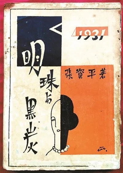 张资平的《明珠与黑炭》在色彩的搭配与条块的分割上也颇具特色。同样是红、黑二色,但设计者在左上方三分之一处画一个黑色的正方形,书名《明珠与黑炭》的“明”字大部分置于黑色正方形内,但从二分之一处开始写,呈白色,状似凸显而不至于隐没;右下三分之二处画一个红色的长方形,与黑色正方形构成对角关系,长方形上方横排的“张资平著”为黑色,一个人的一半后脑勺显于红色的长方形左边界处,为黑色状;右上方横添一指宽的红色的长方条,上标出版年代—1931,但“1931”为红白相间,显于红色中的“1931”为白色状,显于书纸原色(白色)中的“1931”为黑色,各占一半;对角“明”字的小半部分与“珠与黑炭”为黑色状,与白底色封面成对比,另一半人的正面头像立于书纸的原色中,与黑色状的半个后脑勺拼接成一个完整的人头像,但上下错开,暗示社会的不平与黑暗。全部构图红黑对比分明,条块切割清晰,在黑色正方形里的“明”字与在红色长方形里的半个后脑勺,色彩落差鲜明,瞬间将读者的注意力集中在这一巧妙的构图上,令人过目不忘。