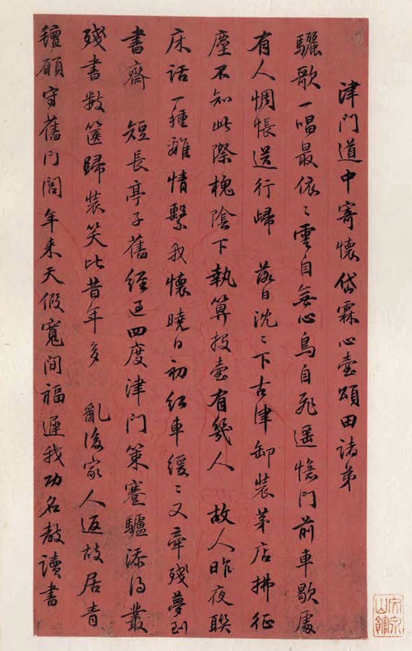 津门道中寄怀岱霖、心壶、颂田诸弟骊歌一唱最依依,云自无心鸟自飞。遥忆门前车歇处, 有人惆怅送行归。落日沉沉下古津,卸装茅店拂征尘。 不知此际槐阴下,执算投壶有几人。故人昨夜联床话,一种离情系我怀。晓日初红车缓缓,又牵残梦到书斋。短长亭子旧经过,四度津门策蹇驴。添得丛残书数箧,归装笑比昔年多。乱后家人返故居,青毡愿守旧门闾。年来天假宽间福,迟我功名教读书