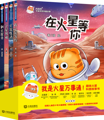 为了激发青少年对太空探索的兴趣,提高青少年科学素养,培养青少年的创新精神和开拓意识,普及关于火星和航天的科学知识,科普与科幻作家凌晨策划并主笔了《火星喵宇宙探索科普故事》丛书,该书由火星学会和大连出版社合作出版,以火星喵这一独特ID的视角,观察火星,纪录人类对火星的科学探索之路,想象未来人类在火星上的生活。这套丛书的主角是一只呆萌可爱、穿着航天服的胖猫——火星喵,它不仅是星际萌宠,还身怀许多神奇本领,被称为“火星万事通”。