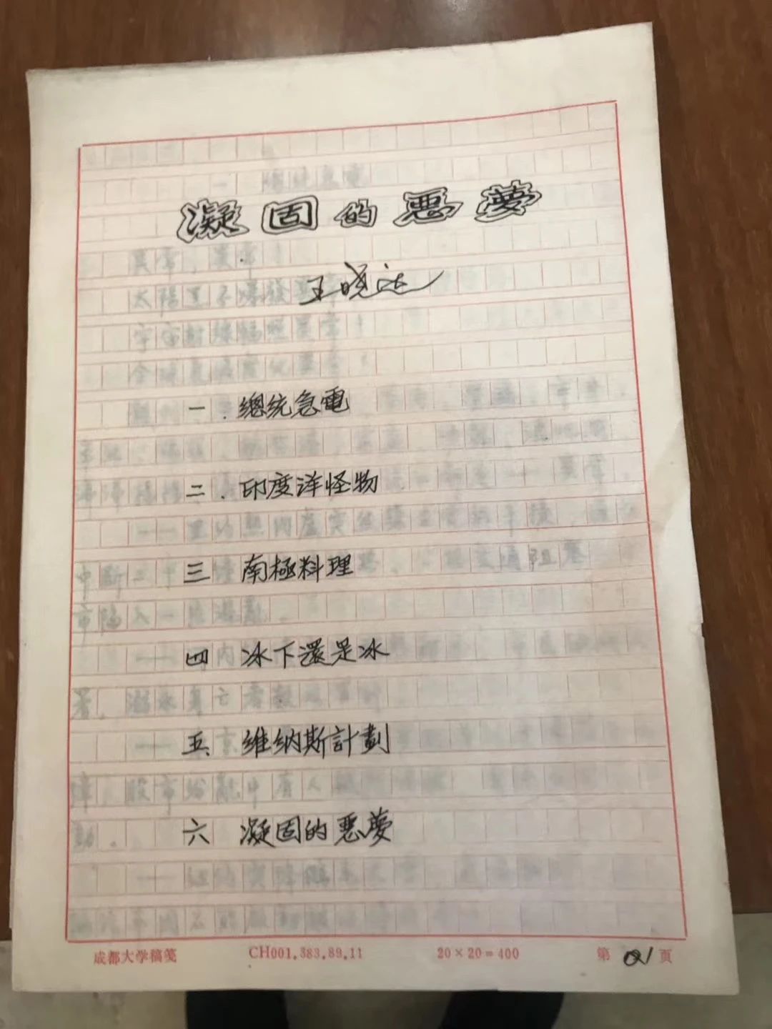 《凝固的噩梦》原稿即《冰下的梦》(发表名)手稿,科幻博物馆供图