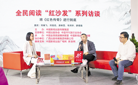 3月31日下午,在“红沙发”系列访谈活动现场,中国新闻出版传媒集团、广西出版传媒集团共同举办将《红色传奇》进行到底——广西《红色传奇》进校园系列活动经验推介会,邀请广西党员教育中心党员教育二处处长、广西《红色传奇》进校园系列活动组委会办公室主任刘楠飞,《红色传奇》总撰稿刘俊廷,广西人民出版社党总支书记、副社长、广西《红色传奇》进校园系列活动组委会综合组副组长韦鸿学,广西新华书店集团新华传文大中专教材有限公司总经理、广西《红色传奇》进校园系列活动组委会活动组副组长廖爱娟,广西壮族自治区河池市金城江区实验小学校长潘映雪等嘉宾分享《红色传奇》进校园系列活动背后的故事,以及全民阅读服务主题出版、社店融合促进图书营销的经验。