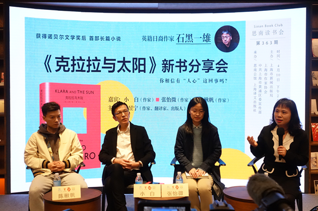 4月10日,《克拉拉与太阳》的新书分享会在思南文学之家举办,作家小白、张怡微、陈楸帆和上海译文出版社副总编黄昱宁分享了自己的阅读体验。
