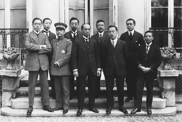 1919年中国欧洲考察团在巴黎,中间者为梁启超