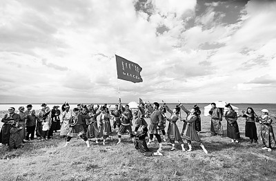 内蒙古苏尼特右旗乌兰牧骑队员到牧区演出。新华社发(东哈达摄)