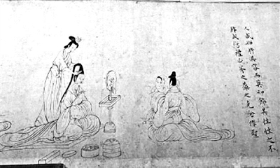 唐朝侯莫陈邈(侯莫陈为复姓)之妻郑氏著《女孝经》十八章,以为女德楷模。此卷描绘《女孝经》前九章内容。每章之后,有楷书录文。
