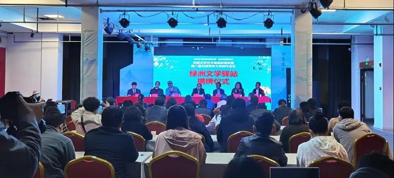 揭牌仪式上,绿洲杂志社宣布授予乌鲁木齐遇见文化产业园董事长何静先生为《绿洲》文学驿站站长,《绿洲》文学杂志文学顾问、原新疆作协常务副主席赵光鸣向何静先生颁发站长聘书。郁笛与何静先生共同为《绿洲》文学驿站揭牌。兵团文学艺术高级研修班的学员等70余人参加了当天的揭牌仪式。