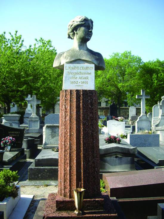 其实,她本名叫玛丽·列奥尼德,阿嘉尔(Agar)是其艺名,系取自《圣经》中的《创世记》。在当时的法兰西大剧院,以《圣经》中名媛姓氏为艺名并非个例。譬如19世纪40年代起红极一时的悲剧演员“拉舍尔小姐”(Mademoiselle Rachel)的芳名就来自《圣经》里雅各的妻子。“阿嘉尔”原是埃及女奴,跟长老亚伯拉罕生下伊斯迈尔,受亚伯拉罕发妻萨拉排斥。玛丽·列奥尼德由其导师利古尔决定取此芳名,正与她悲剧演员的身份相合。除了“法兰西大剧院”,阿嘉尔还不时到“博马舍剧院”、拉丁区的“奥德翁剧院”“圣马丁戏院”“昂彼居剧场”和坦普尔林荫道的“快乐剧场”演出,在莎士比亚的《李尔王》以及杰拉尔·德·纳尔华的剧本和弗雷德里克和大仲马合写的《奈尔塔》里扮演角色。她还在诗人路易·雅桑特布耶的戏里饰朱丝蒂娜;所到之处,皆以天生丽质和精湛演技得到如潮赞美。
