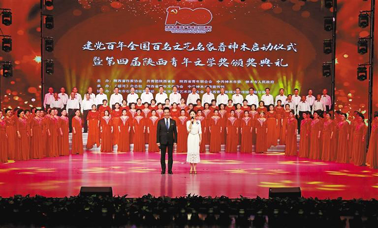 5月19日,由陕西省作家协会、共青团陕西省委、陕西省青年联合会、中共神木市委、神木市人民政府主办,《延河》杂志社、陕西省青年文学协会、中共神木市委宣传部承办的建党百年全国百名文艺名家看神木启动仪式暨第四届陕西青年文学奖颁奖典礼在神木市举行。现场为吴克敬、陈小手、黄海、宋宁刚、孙涛(惊蛰落月)、高一宜等12名获奖者颁发了8个类别的主奖和提名奖。陕西省作协党组书记齐雅丽,陕西省作协主席贾平凹,共青团陕西省委副书记、省青联主席徐永胜等相关负责同志以及来自全国的百余位文学艺术家,与神木市中小学师生代表等700余人共同见证了第四届陕西青年文学奖的颁发。