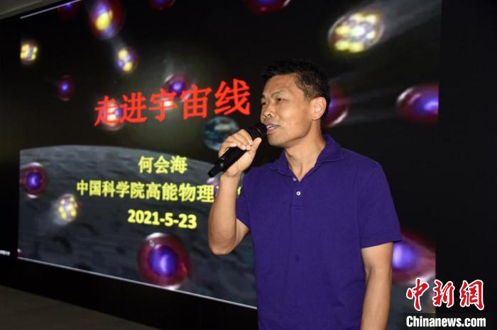 中科院高能所何会海研究员作《走进宇宙线》科普报告。 中新社记者孙自法 摄