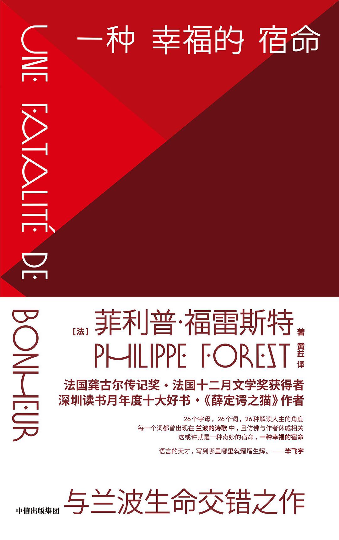 最近,中信·大方与楚尘文化一起推出了法国作家菲利普·福雷斯特的小说《一种幸福的宿命》。该书从兰波的诗文中抽取26个词语,并让它们的首字母和字母表中的26个字母一一对应。借由这些词语,福雷斯特沉潜至兰波和自己的生命之中。福雷斯特称这种写法从《易经》卦象中获得灵感。