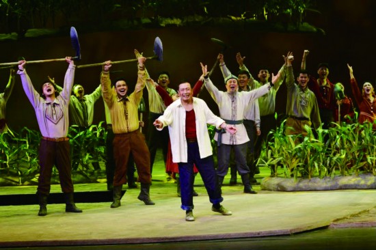“二度梅”获得者、表演艺术家朱衡,在剧中饰演了刘国忠一角,其炉火纯青的演技和极端认真的态度,不仅在剧中以外在的特征获得观众的高度认可,而且透视出人物的内心深度而能引发极强的心灵震撼。如当主人公听到女儿那一番激烈的言辞后,刘国忠的内心产生了剧烈斗争与反思,才有了面对胡杨时倾诉心里的纠结和苦楚,这一情节无疑使人物的精神层面得到了丰富与深化,也让戏剧具有了更为跌宕起伏、扣人心弦的艺术效果。其他演员的表演都是倾情而为的,每一个人物因细致刻画都能给人留下较深的印象,如乡党委书记赵东方、村委会主任、刘妻、刘立强、刘小芬,以及村民图尔洪、木拉提、阿依吐拉等。同样值得一提的是,剧作采用三位维吾尔乐手(吐尔逊·比拉力、阿布都沙拉木·阿不力米提、肉孜买买提·木沙)以现场演奏的方式弹奏新疆民乐,使之作为剧作一种有趣的开场形式,进而成为串联起整部剧的音乐元素,营造出随剧情发展而不断变化的舞台氛围。从刘国忠是甘肃人喜欢听秦腔的特点出发,编导在剧中还加进了一些味道淳厚的秦腔唱段,既体现出剧作浓郁的新疆生活特色,又成为多元文化交相辉映之作。