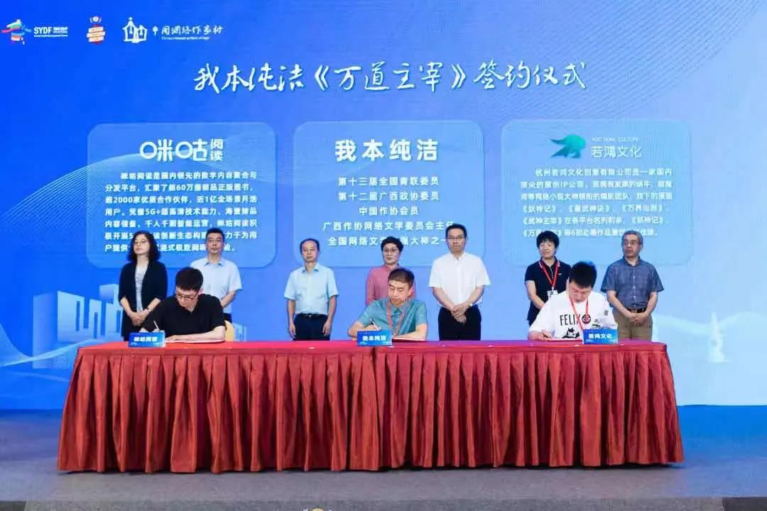 论坛期间,由咪咕阅读和若鸿文化主办的新书《万道主宰》签约仪式举行,我本纯洁正式入驻咪咕阅读。