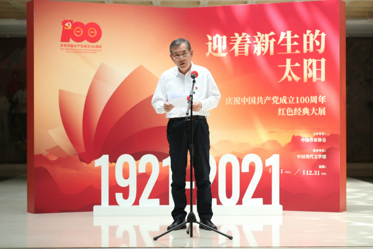 “迎着新生的太阳——庆祝中国共产党成立100周年红色经典大展”开幕式现场