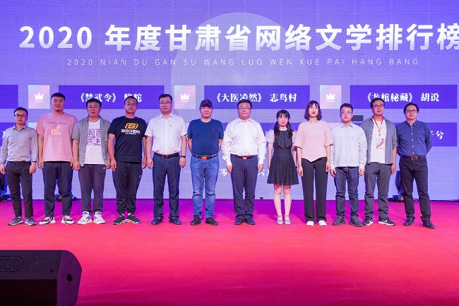 在启动仪式上还举行了甘肃省网络作协与读者出版集团、七猫中文网、奇迹文学、咪咕阅读等大型网络文学网站的战略合作签约仪式。同时发布了2020 年度甘肃网络文学排行榜,通过对全省网络作家2019-2020年度创作情况调查研究,并通过各家文学网站、视频平台等机构提供的数据支持,经省网络作协邀请专家评审,推选出了《明天下》(孑与2)、《禁武令》(骆驼)、《大医凌然》(志鸟村)、《龙棺秘藏》(胡说)、《沫许辰光》(月下魂销)、《剑仙在此》(乱世狂刀)、《绝世神帝》书狂人、《超级百宝袋》(浪高三尺三)、《一吻不定情》(子兮)、《基因大时代》(猪三不)共10部作品。