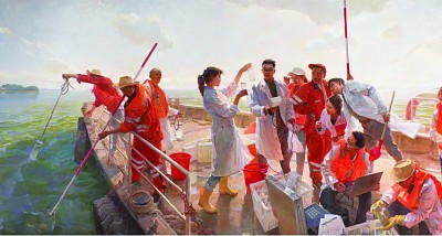 党的十八大以来,美术家们在习近平新时代中国特色社会主义思想指引下,更加自觉地为人民创作、为时代放歌,描绘时代风云,弘扬时代精神,推动美术事业不断从高原迈向新的高峰。商亚东的油画《最美太湖水》聚焦科技治理水污染,将可持续发展的主题生动地落到画布上,呈现出党和国家大力科学治水、科学管水的卓越成效,再现了太湖流域湖水澄清、生态优美的旖旎风光。陈树中的油画《俱欢颜·安居》将创作视角专注在国家出台的惠民政策上,即加大公租房发展力度,解决城市中低收入者、外来务工人员及毕业大学生住房难的问题。“对于都市化进程迅猛发展的中国来说,这是一件大事。”陈树中告诉记者,面对新的家园,人们笑逐颜开的样子,给了他很多触动和灵感。在创作时,画家还将自己的形象融入画面,与百姓们一同感受生活的喜悦滋味。