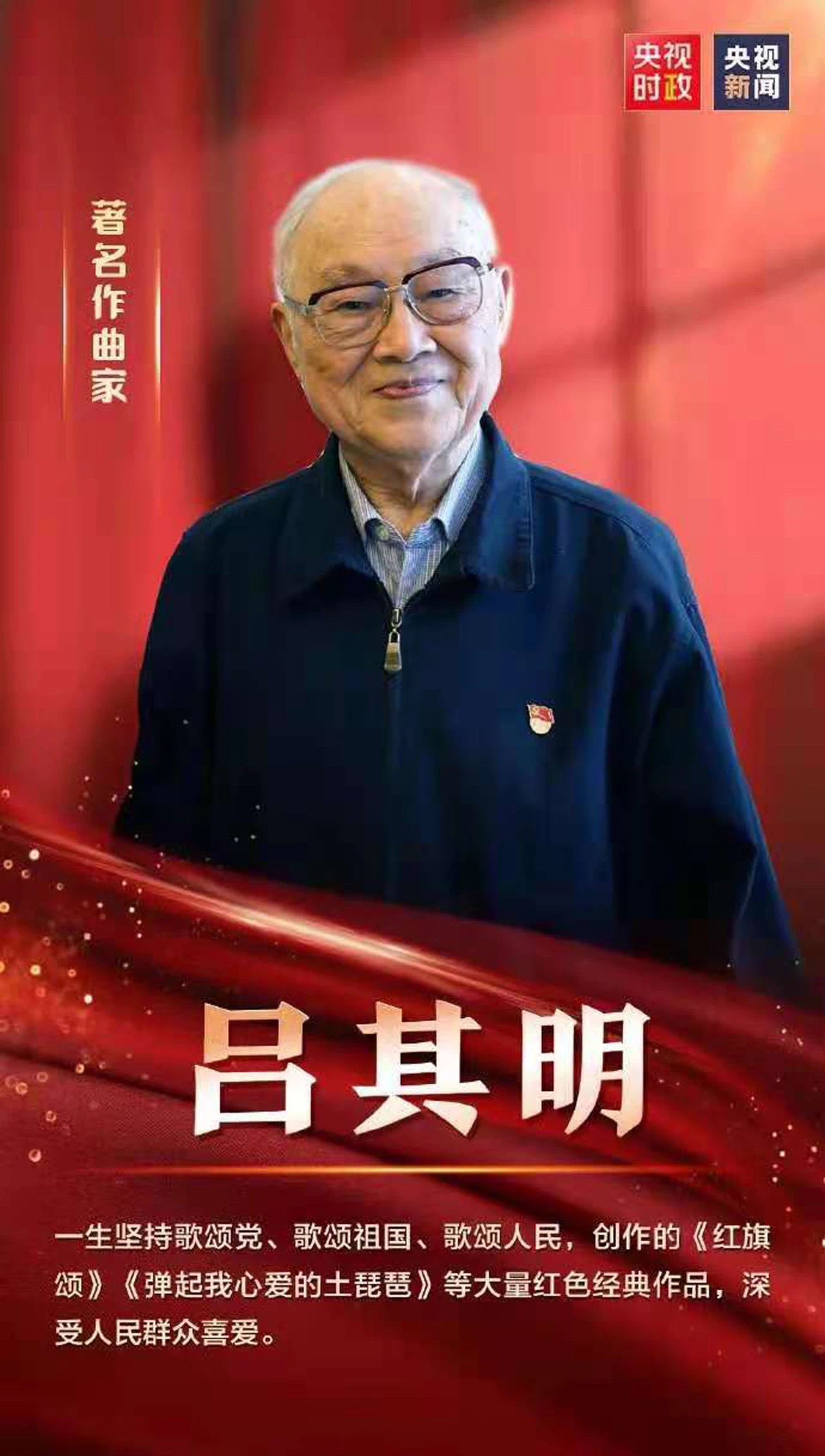 吕其明 汉族,1930年5月生,1945年9月入党,安徽无为人,上海电影制片厂艺术委员会原副主任。新中国培养的第一批交响乐作曲家,著名电影音乐作曲家,一生坚持歌颂党、歌颂祖国、歌颂人民。70年来先后《铁道游击队》《焦裕禄》《雷雨》等200多部(集)影视剧作曲,创作《红旗颂》《使命》等10余部大中型交响乐作品,300多首歌曲,《弹起我心爱的土琵琶》等歌曲广为传唱。荣获“全国离退休干部先进个人”等称号和“中国音乐金钟奖终身成就奖”等。